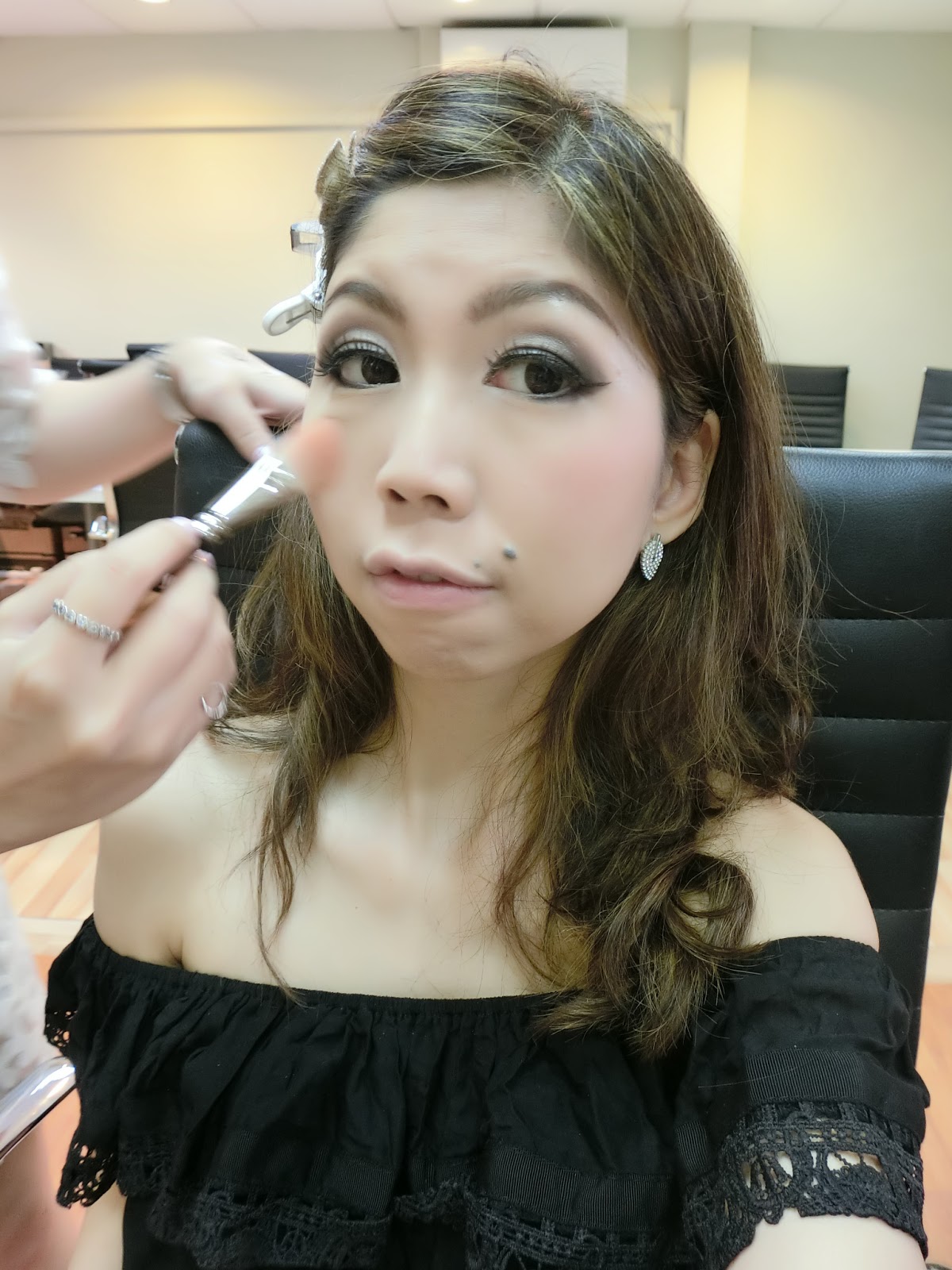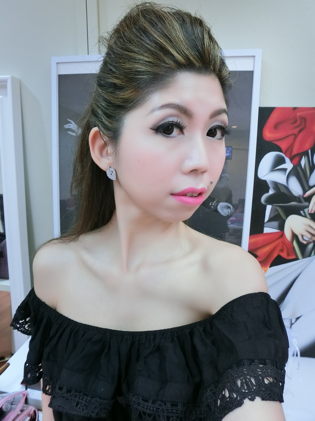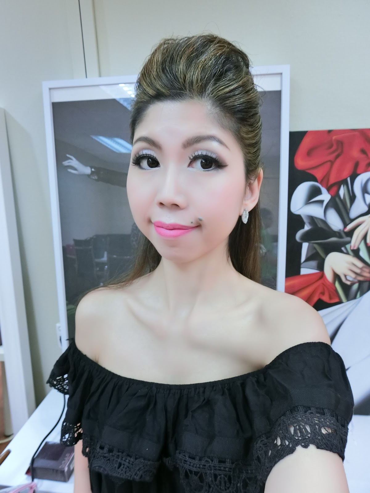 Carina is known for her natural Korean makeup but this time to go in accordance to the fashion show requirement, she did a Glam & Semi Smoky Eye makeup for me, and finish off by the pull back sleek hairstyle.