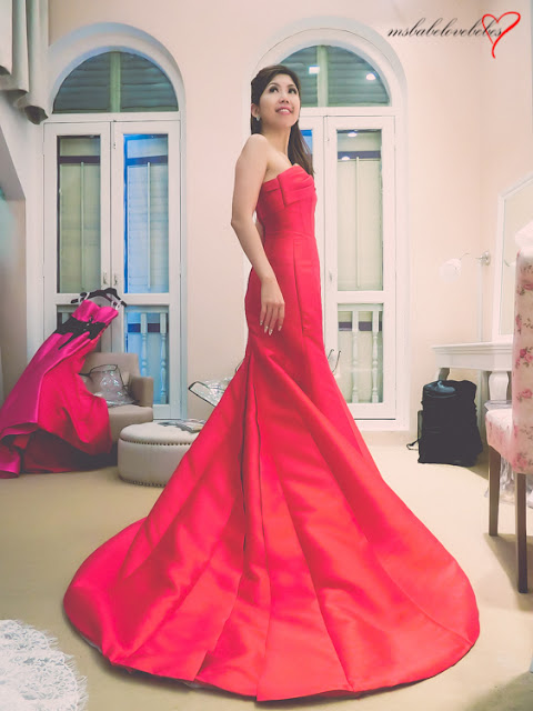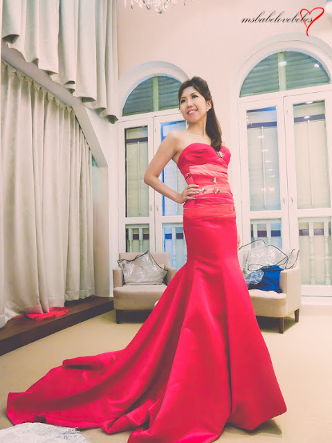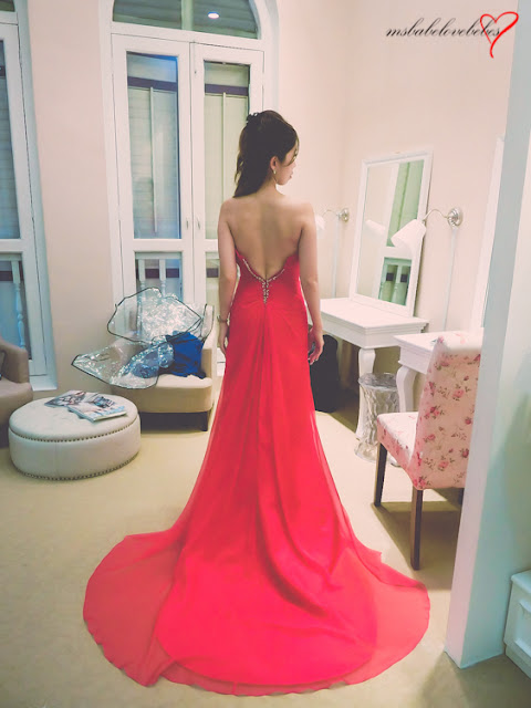 It seemed that red does worked really well for me. Thus, I was given yet another red bustier dress which I need to alter slightly bigger if I were to get this. I like the light chiffon feel with subtle blings and high cut at the thigh area as you walk with this gown.