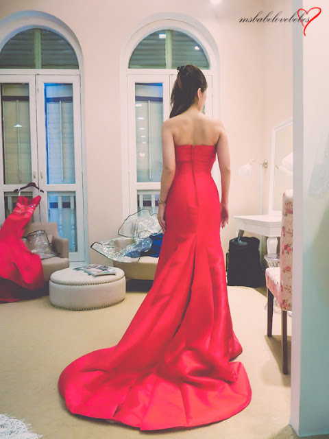 It seemed that red does worked really well for me. Thus, I was given yet another red bustier dress which I need to alter slightly bigger if I were to get this. I like the light chiffon feel with subtle blings and high cut at the thigh area as you walk with this gown.