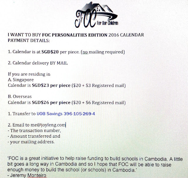 ~ Proceeds from BOTH calendars go to the same fund raising goal, US$28,000 to build a school for Cambodian children under Tabitha Singapore/Cambodia.