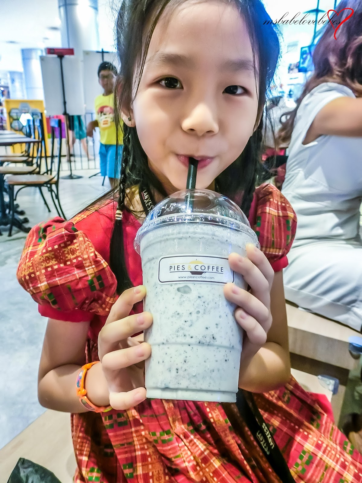 Looking happier with her Oreo & Cream milkshake, slurping away!