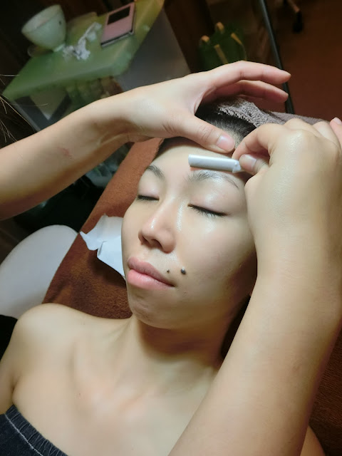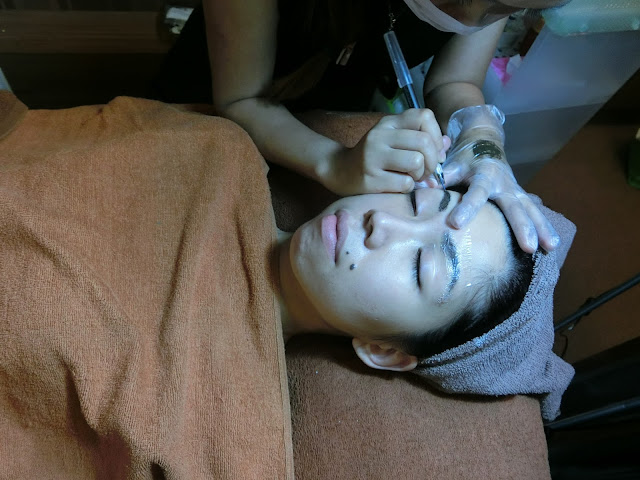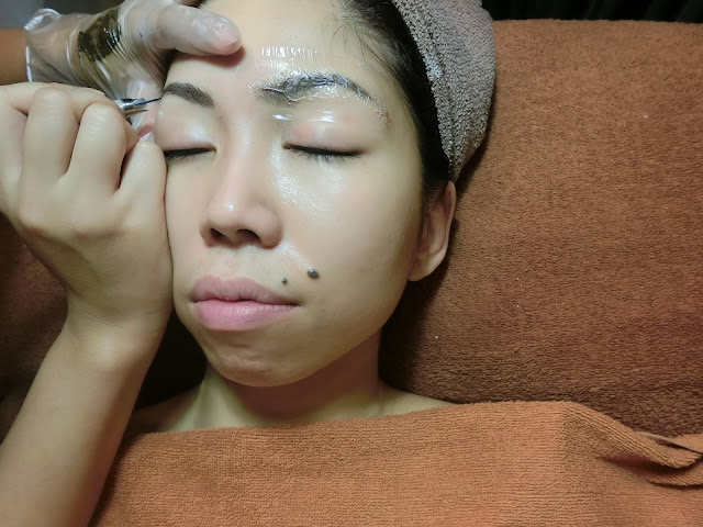 I was attended by pretty Elicer who started by trimming my brows without removing my natural ones. Just in case that you were thinking that the brows would be clean shaven. I was glad to retain our original ones though. Kekeke… I had to ask her before she start for the worry that my original brows would be gone.