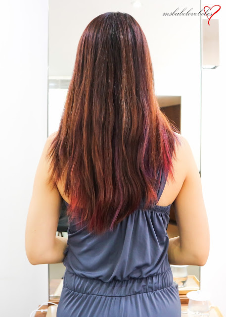 My monthly hair retreat to put my hair right despite my crazy schedule. I came running to Hairlinc as you could see that I been trying to make it neater by trying to straighten it myself and apparently my hair had lost it’s elasticity due to prolonged chemical use and stretching of tong. Now that the Chinese New Year is over, its time to make a change. It was the concluded that I would need a haircut to cut off the dry ends with more layers to add more life to my hair and color correction to rid the faded pink/violet highlights.