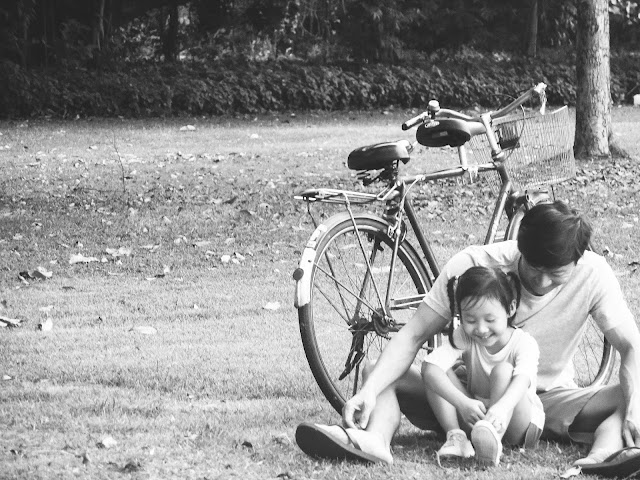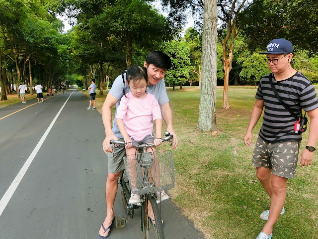 Clovelle first experience being a pillion on a bicycle. Look at her secretly smiling away.