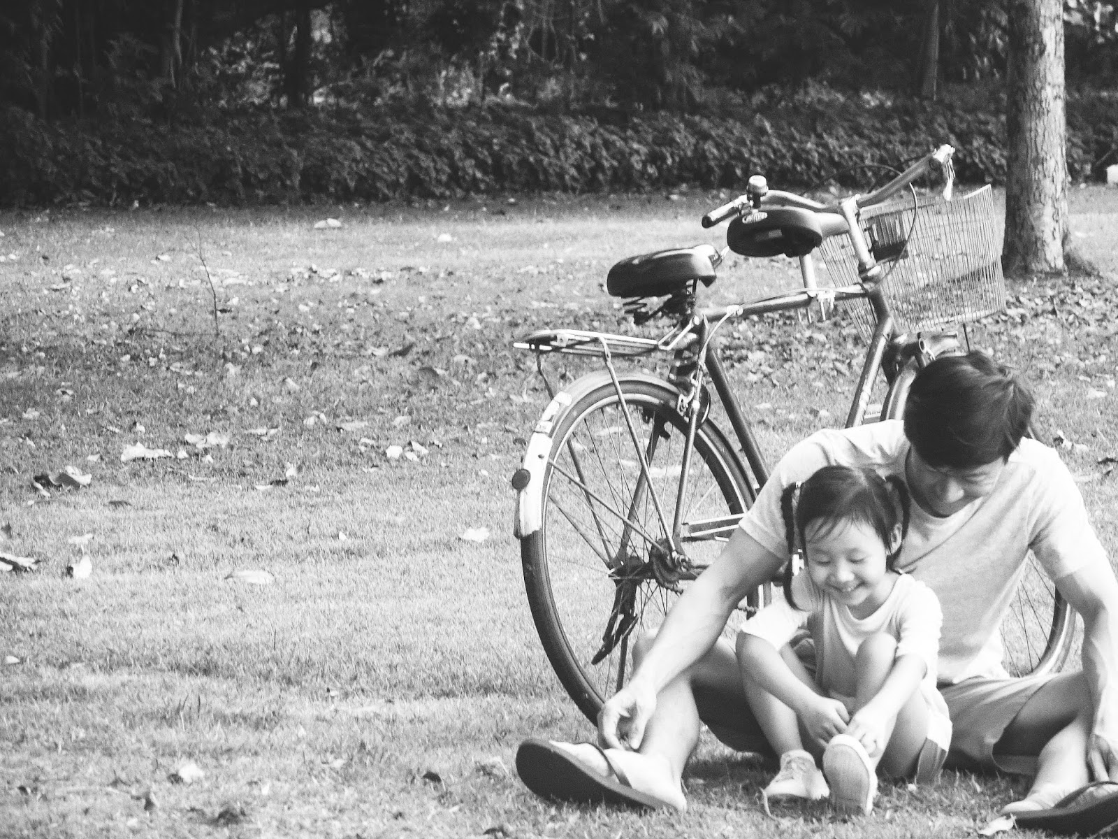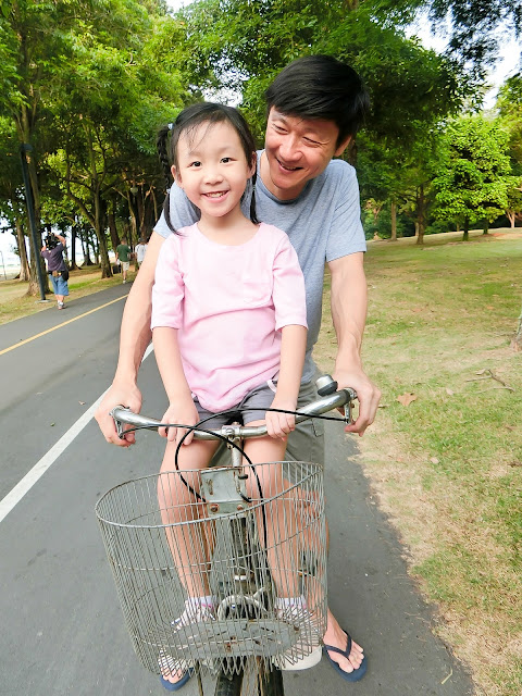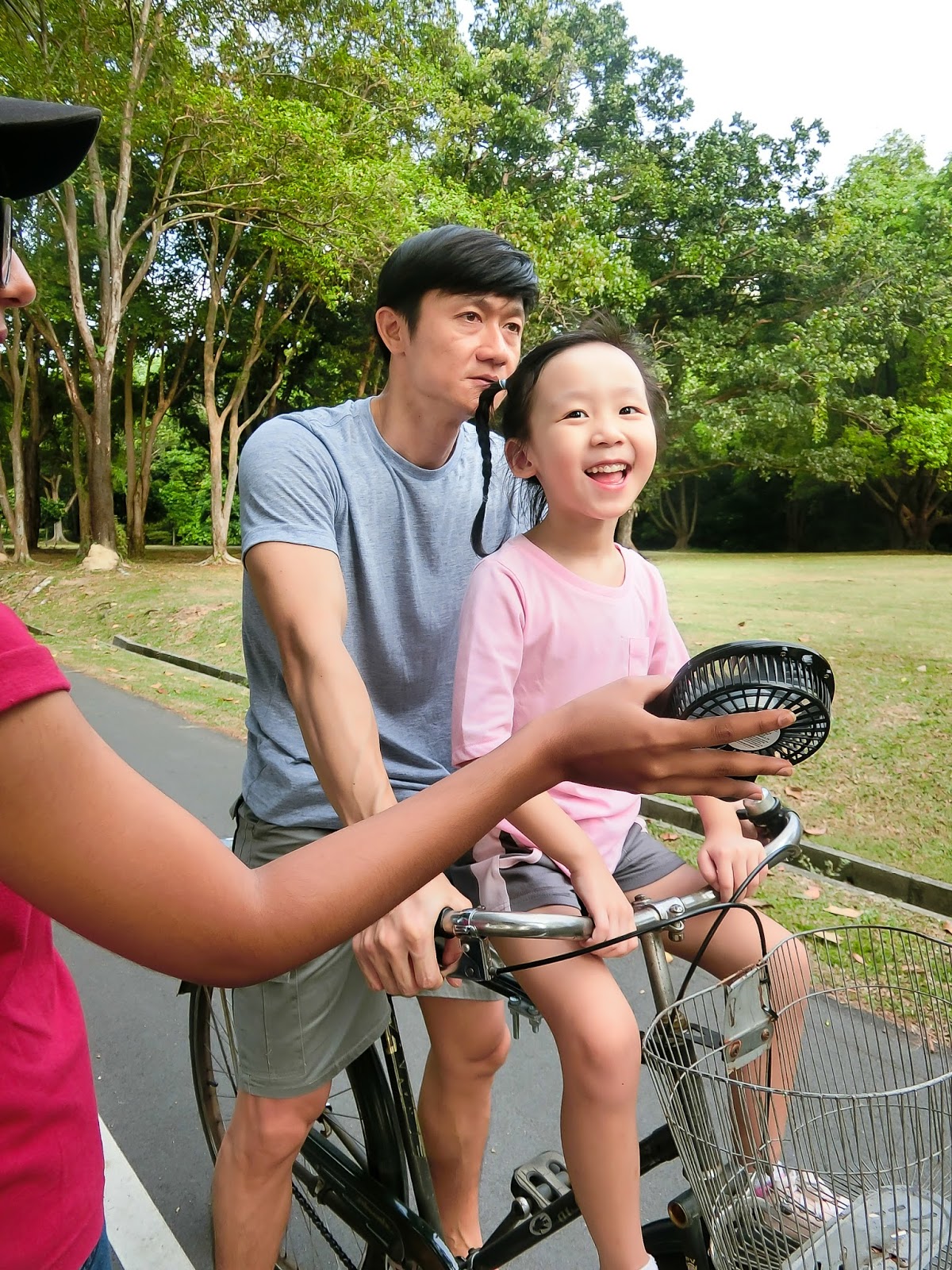 Clovelle first experience being a pillion on a bicycle. Look at her secretly smiling away.