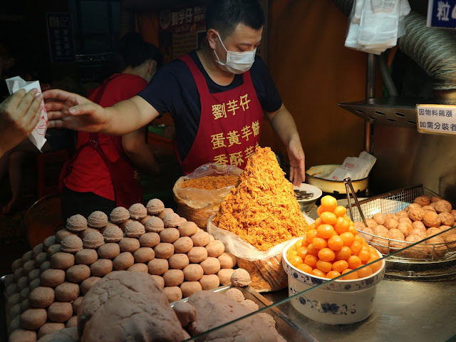 This stall is called “Liu Yu Zai” which makes and sells crispy taro balls. It is a combination of taro and egg stuffed in a dough and then deep fried. This kind of snack is very typical Taiwanese snack. You would need to get at least 2 balls.