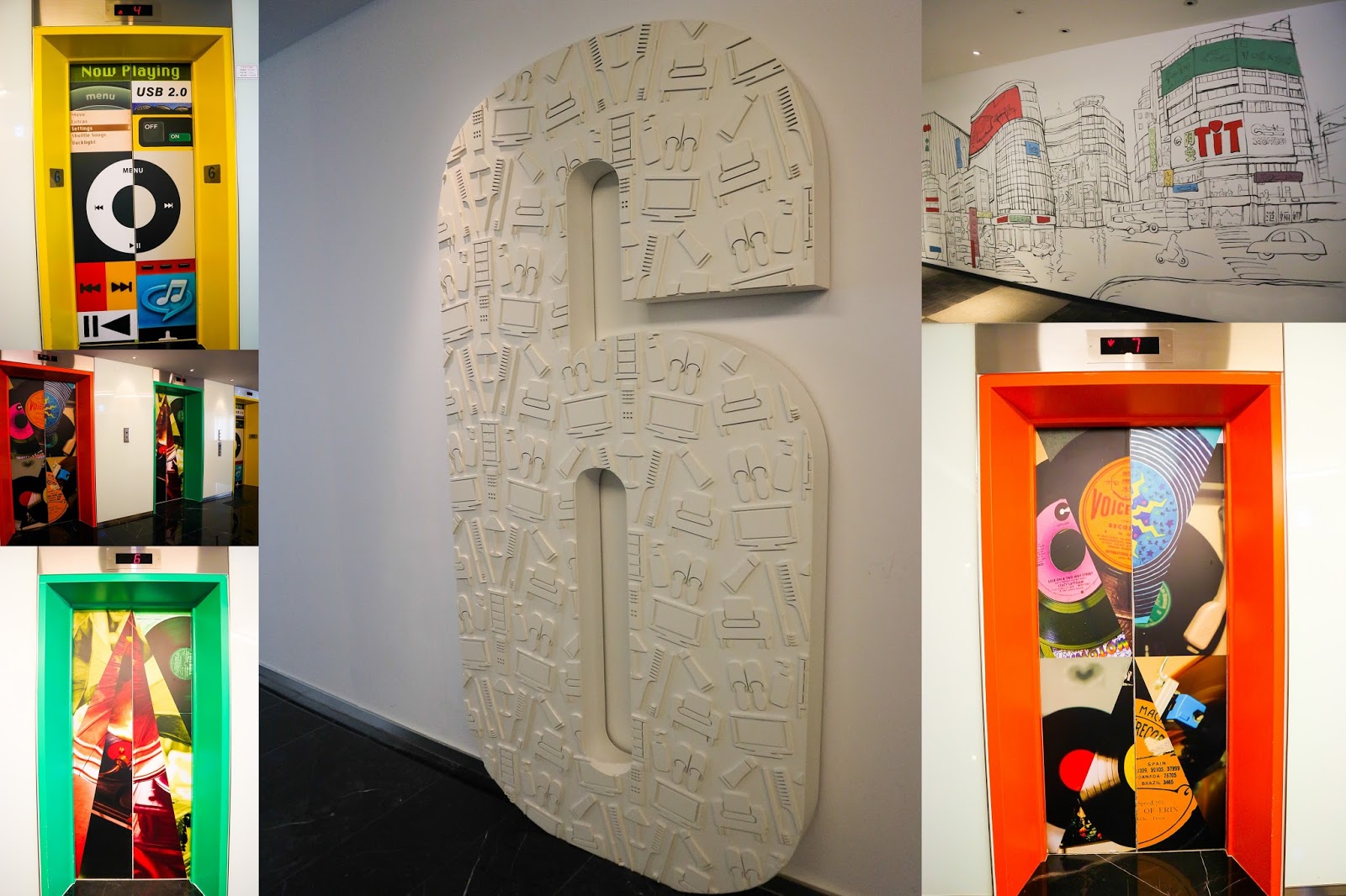 After hearty breakfast, I was given a tour around the place. Each level has its own style and artistic element infused into it. Level 6 has the floor number with 3D furnishing design on it. Love the colourful lifts that would lift up the mood of any traveller at anytime of the day. Notice the huge drawing mural showing the sights in Ximending drawn by an artist.