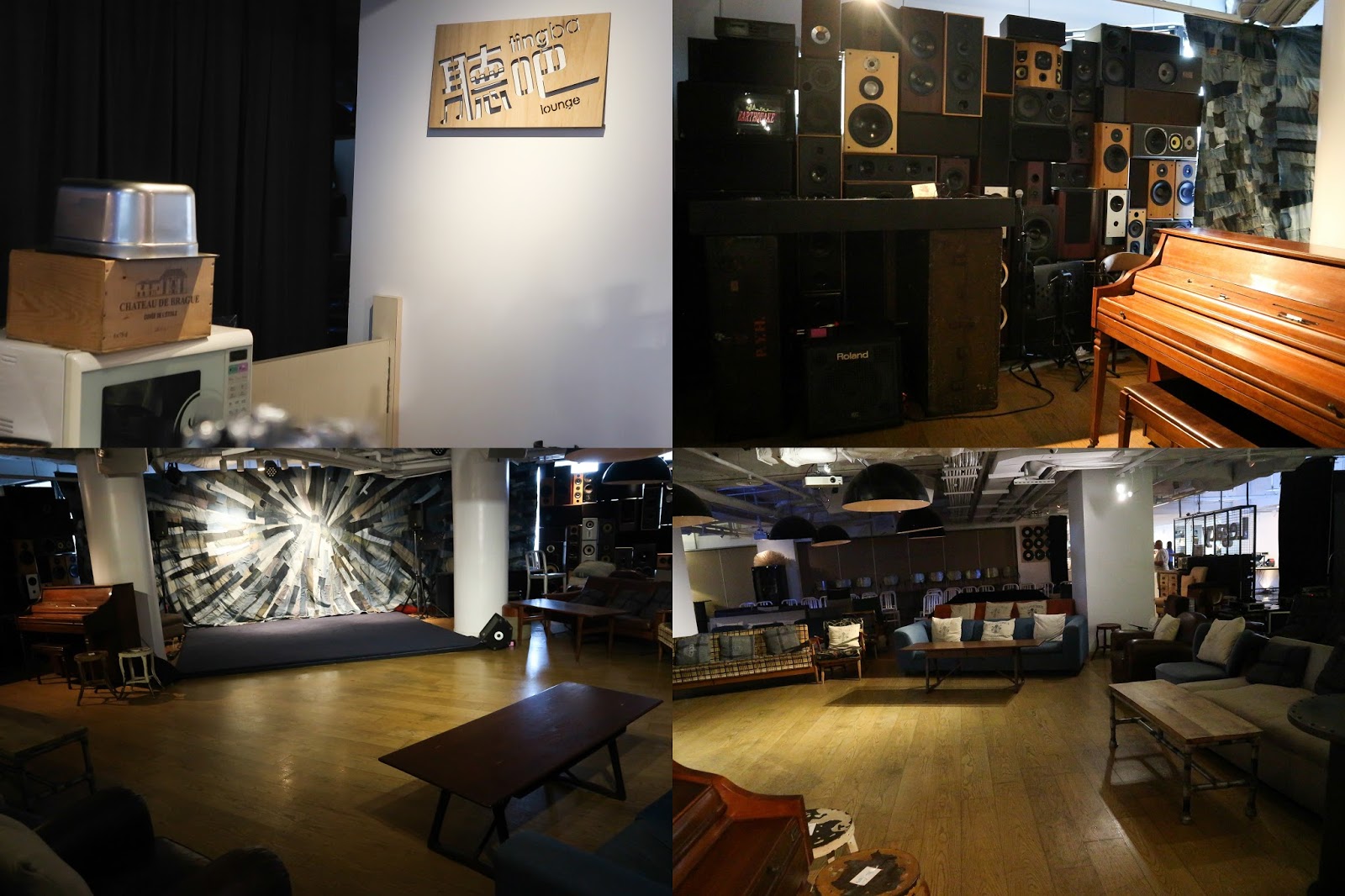 听吧 (tingba) is a retro chic music lounge where regular mini concerts, DJ mix are held. The many speakers, wall backdrop decorated with vintage jeans and the soft fabric sofas created the right cozy ambience while you enjoy the music.