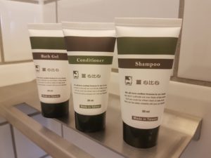- Free bath gel, shampoo, hair conditioner, body lotion, tooth brush, tooth paste, shower cap, and cotton buds